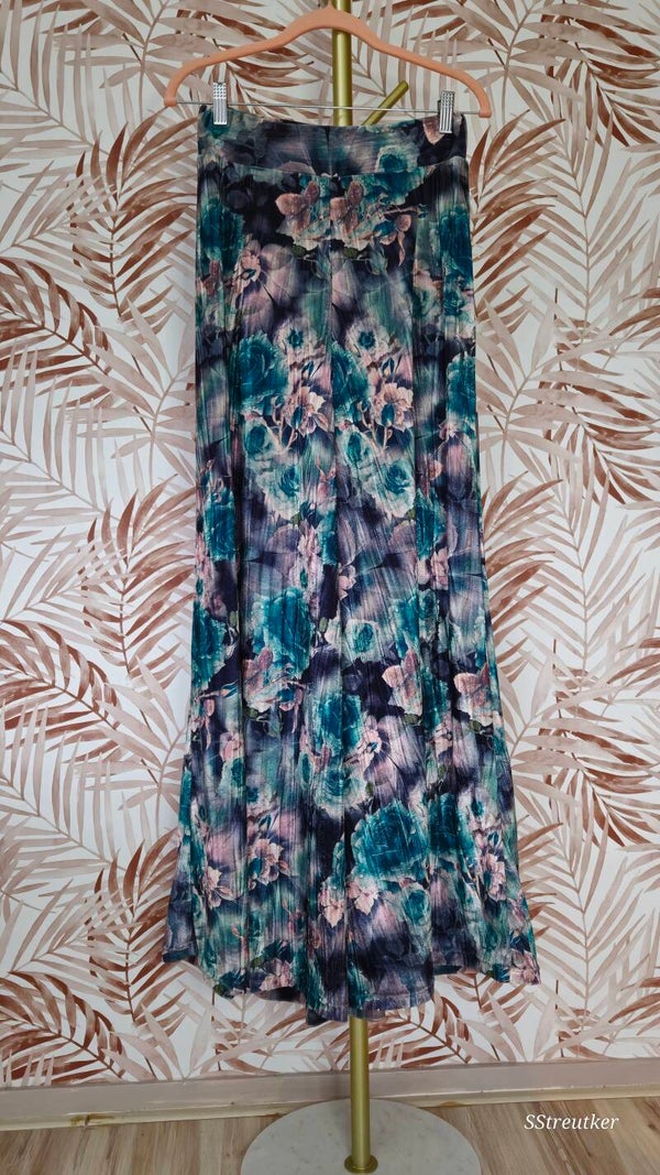 Prachtige palazzo-broek met hoge taille in heldere voorjaarskleuren. De ultra wijde pijpen zorgen ervoor dat je taille smaller lijkt.